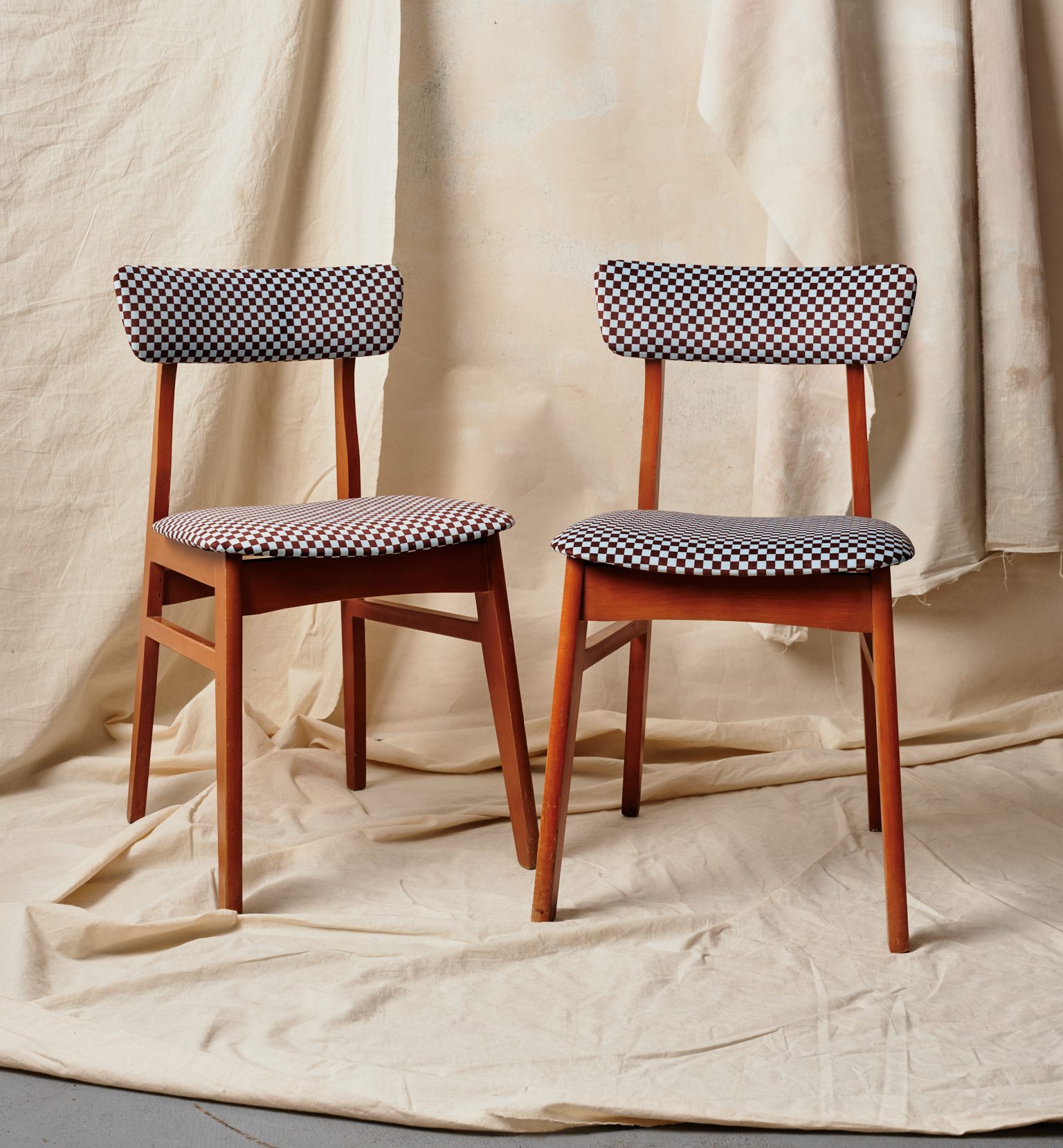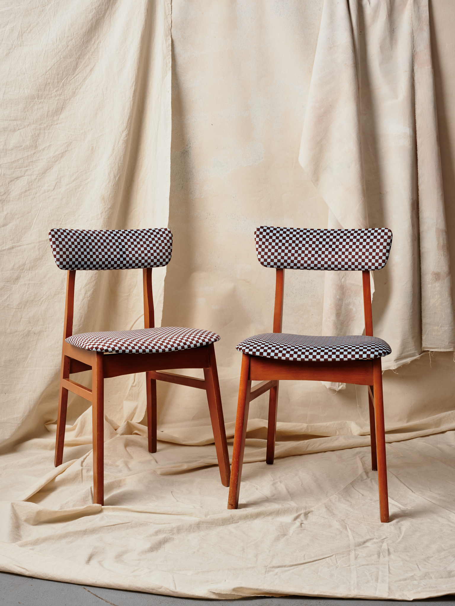 Cocoa & Moonlight Check Schreiber Mid-Century Chairs